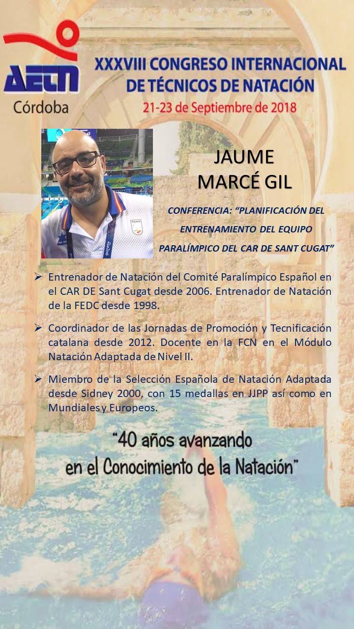 Nos complace contar con un entrenador de tanto nivel entre nuestros invitados, ya que cuenta con un total de 15 medallas conseguidas por sus nadador@s en Juegos Paralímpicos y muchas más en Mundiales, Europeos y World Series. Podremos escuchar su experiencia en cuanto a la planificación del entrenamiento del Equipo Paralímpico del CAR de Sant Cugat.
