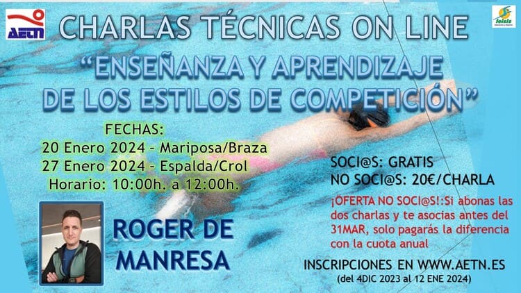 La AETN organiza dos CHARLAS TÉCNICAS ON LINE, ante la demanda recibida de técnicos de base, monitores de natación y profesores de escuelas de natación, con interés en información referida a la enseñanza y aprendizaje de los estilos de competición.